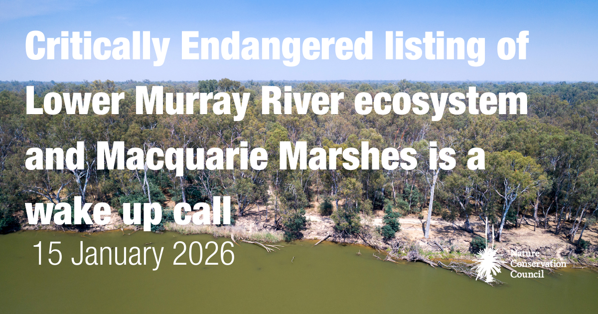 The Nature Conservation Council of NSW has welcomed today’s decision by the Australian Government to list the Lower Murray River System as Critically Endangered, saying the announcement confirms what communities and scientists have warned for years.: Australia’s greatest river system is in serious trouble.