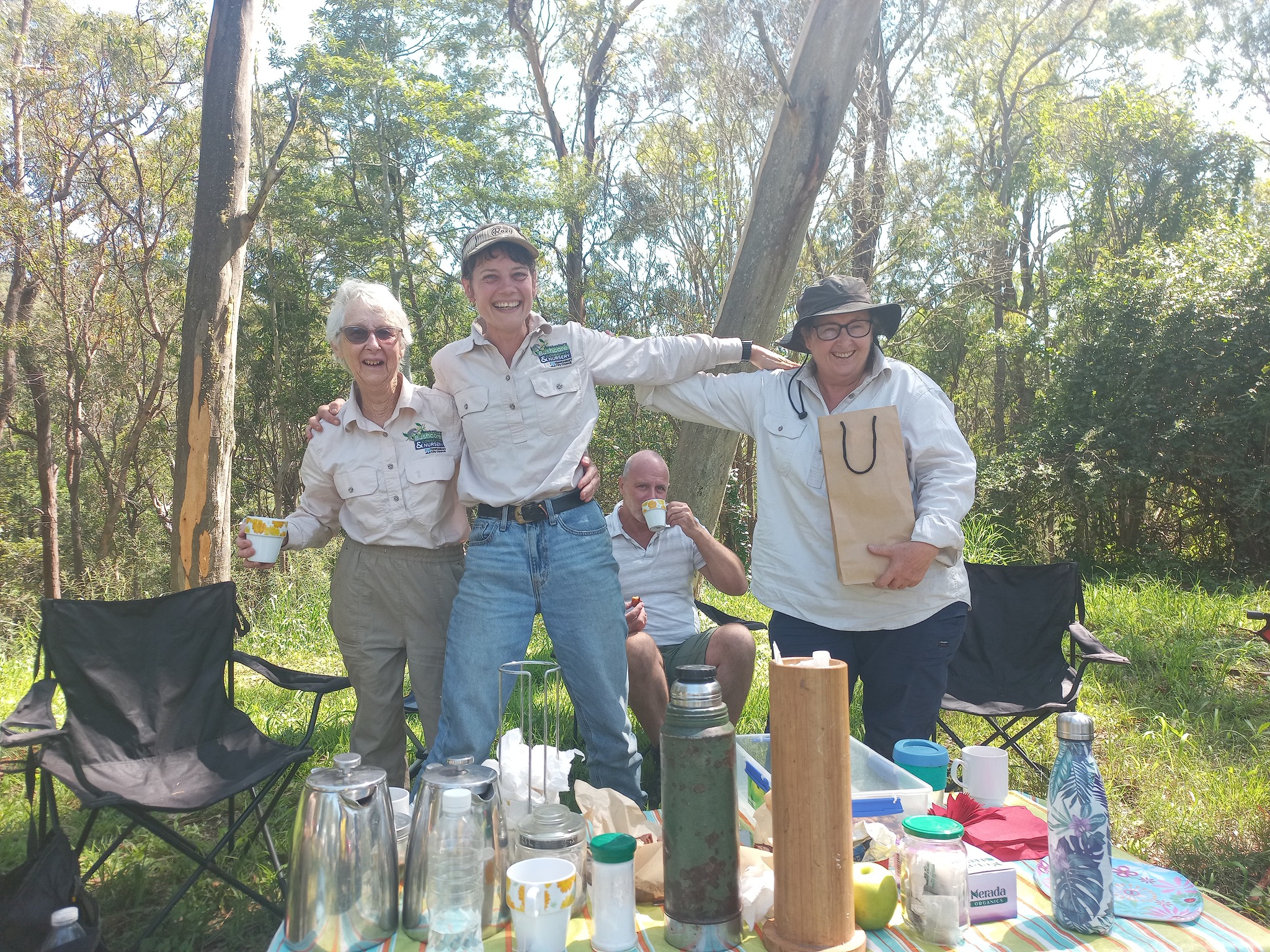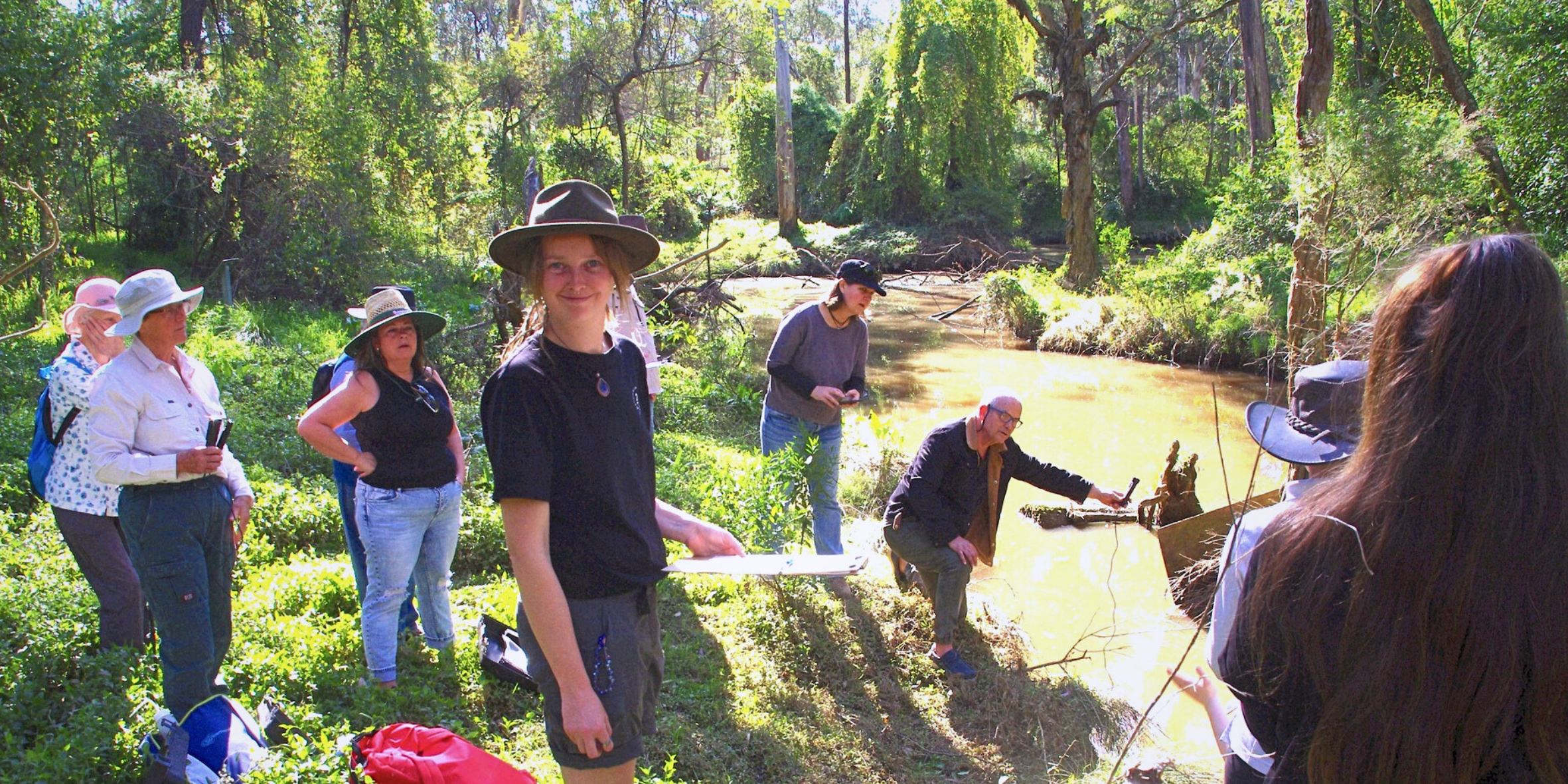Images (top to bottom): Testing the water at Currency Creek as part of Streamwatch training, Hawkesbury Eco Hour with Councillor Danielle Wheeler, morning tea and good company at HEN Bushcare