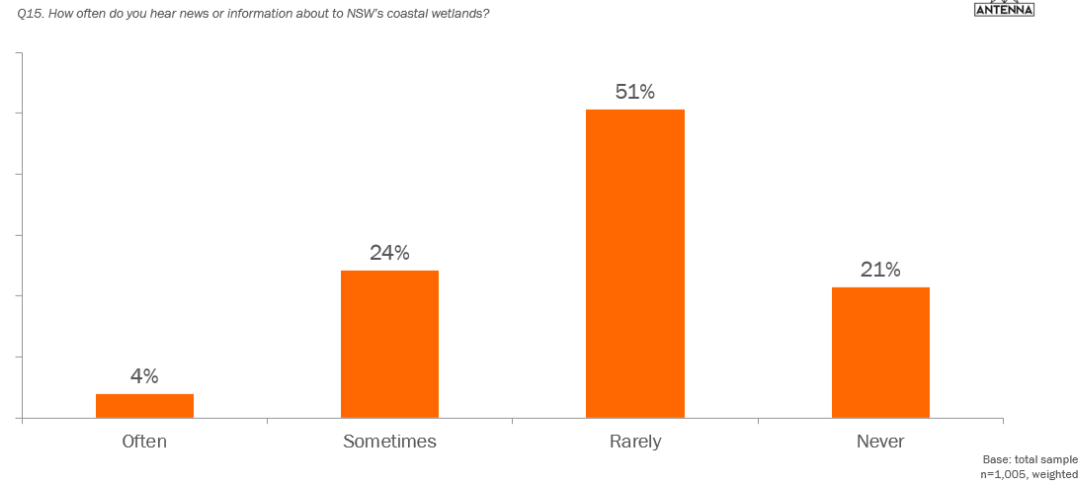 (Polling question: How often do you hear news or information about NSW's coastal wetlands?) The data makes it clear, if we are to protect and restore our coastal wetlands, we need to raise their profile. |